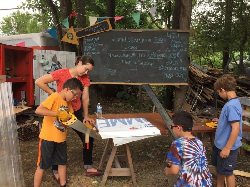 Children learn to use basic hand tools, take their designs from idea to reality, collaborate across age groups, and tell imaginative stories through theater games and role-playing — all while contributing to the betterment of the Detroit/Hamtramck community through the construction of a lasting play space for all.