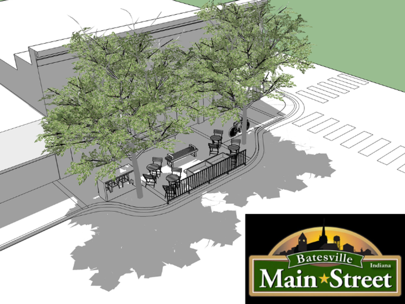 In Batesville, Indiana, a small community space in the heart of Main Street was created by turning a formerly paved parking space into a public gathering space with seating, landscaping, and new trees. This new space creates a community destination downtown, reintroduces nature, and creates new opportunities to break up large swaths of concrete to develop more green, shady spaces to cool the surrounding area. Funding for this new space was provided by our CreatINg Places crowdgranting program in partnership with the Indiana Housing & Community Development Authority.