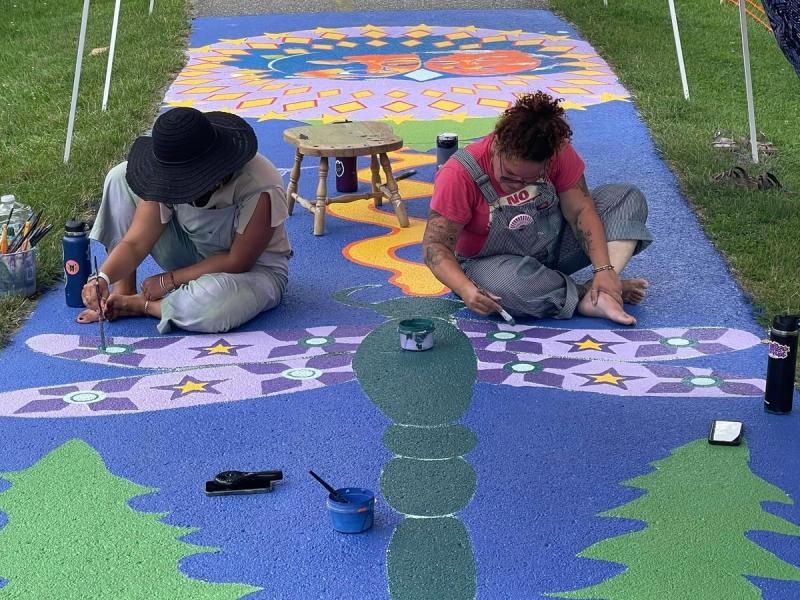 A great example is the Lamoille Art & Justice Project’s outdoor mural project on the Stowe Recreation Path. The Better Places grant helped install a beautiful community mural directly on the recreation path during a multi-day open community paint workshop in July 2022. Juniper Creative Arts guided participants in painting parts of the overall mural design, which was inspired by the podcasts, readings, and conversations about racial justice that their project has led over the two years. This community-driven project helped transform a popular summer spot for mixed-use recreation into a declaration of the community’s creativity, inclusivity, and values.