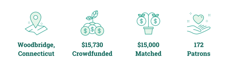 By reaching the crowdfunding campaign goal, the campaign unlocked a matching grant from Sustainable CT’s Community Match Fund. The program offers a 1:1 match of up to $15,000 to support climate change and clean energy projects that promote, support, or target energy efficiency, renewable energy, and greenhouse gas reduction.